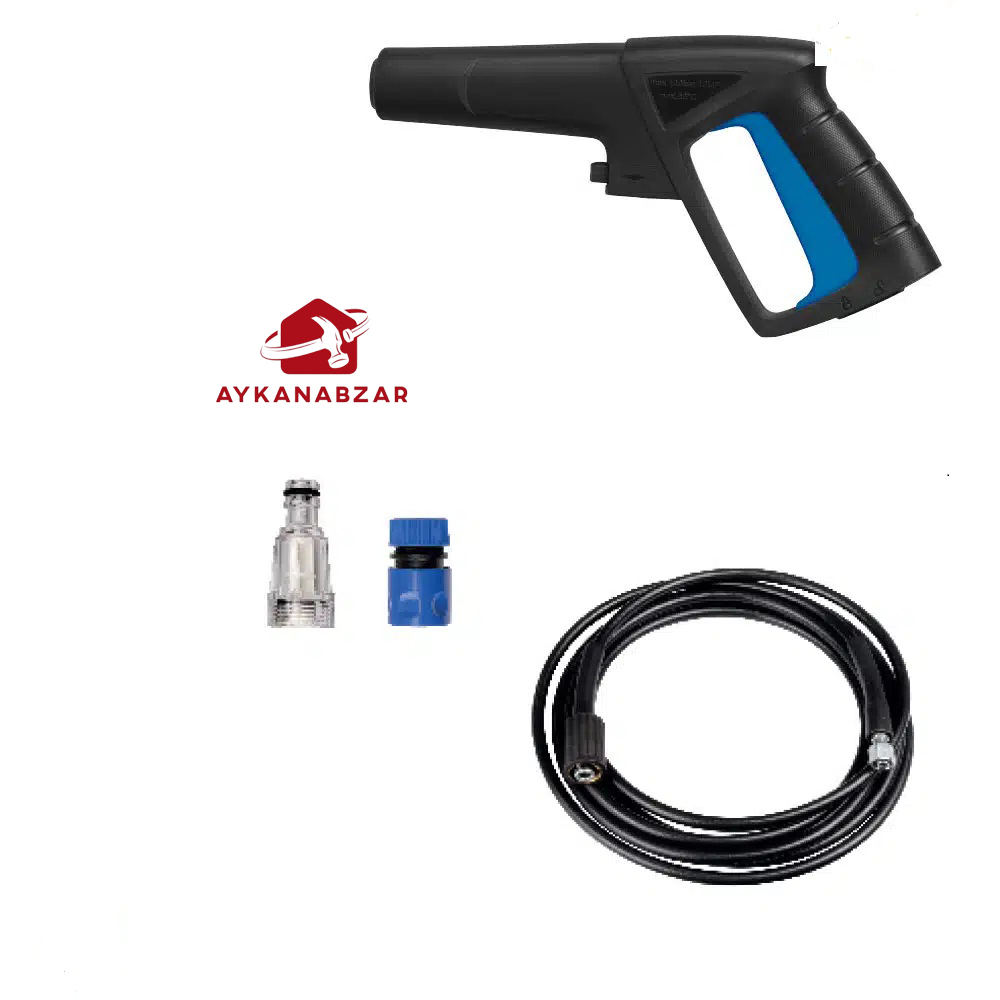 همراه این دستگاه فیلتر، کوپلینگ ورودی آب و تفنگ و شیلنگ 5 متری فشار قوی با نازل قابل تنظیم عرضه شده است.
