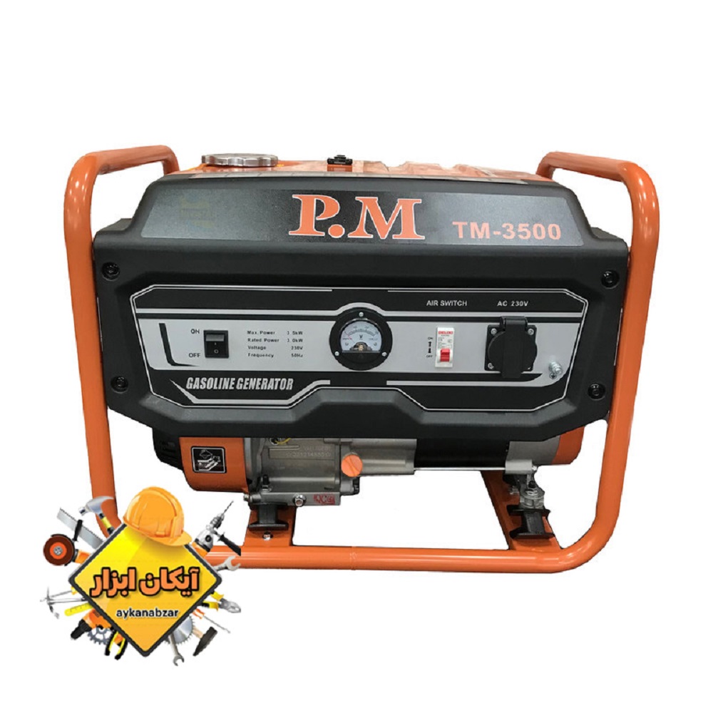 موتور برق PM مدل 3000 وات با وزن 45 کیلو گرم می باشد. این موتور برق چهار زمانه است و نیازی به مخلوط کردن روغن و بنزین در داخل باک نیست.