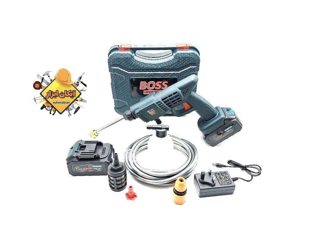 کارواش شارژی باس به همراه نازل برنجی و لانس و شیلنگ می باشد. سری های پاشش به صورت خطی و نقطه ای دارد.
