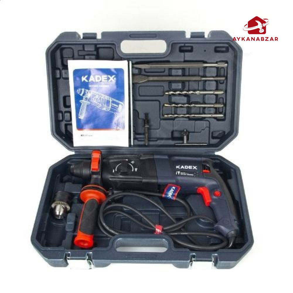 دریل کادکس بتن کن دارای 3 عدد مته سوراخکاری، 2 عدد مته تخریب و تبدیل و سه  نظام است. این مدل دارای سیستم قلم گیر پیشرفته SDS-PLUS بوده و قفل کن کلید جهت استفاده مداوم و طولانی مدت از دستگاه هم دارد.