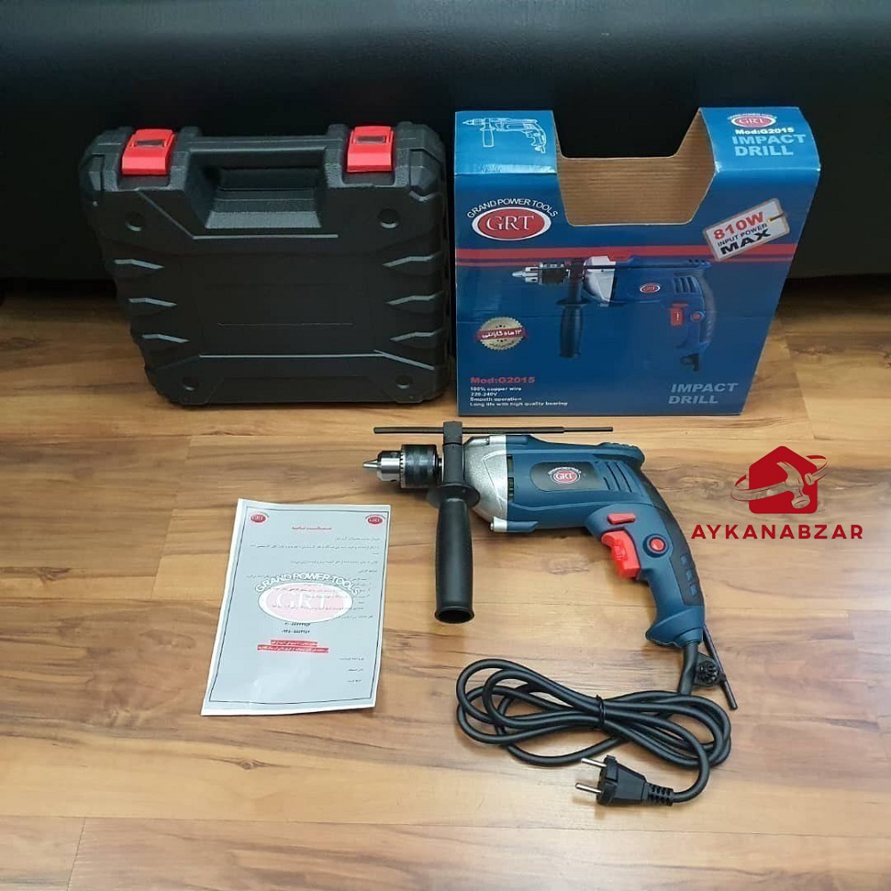 دریل چکشی نیم تنه فلزی برند GRT دارای توان 810 وات واقعی و سرعت بی باری 2800RP می باشد.